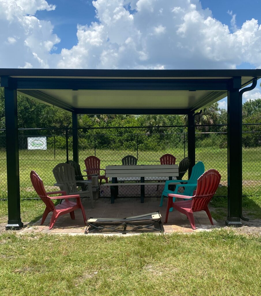The new permanent shade pavilion for our members and dogs is finished! The pavilion looks great, and covers the seating area of both the small and large dog parks. We will now focus on finishing the installation of the remaining bricks our members and friends have already purchased, along with added landscaping.