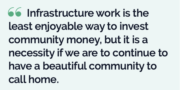 Phase 2 of the road resurfacing is being completed this month. The community has a three-year plan to replace all the Section 22 roads, with the final roads to be completed in the summer of 2026. Infrastructure work is the least enjoyable way to invest community money, but it is a necessity if we are to continue to have a beautiful community to call home. Wells, roads, landscaping, bridges, and amenities are all vital to keeping BSM a top contender when people are looking for beautiful places to call home.