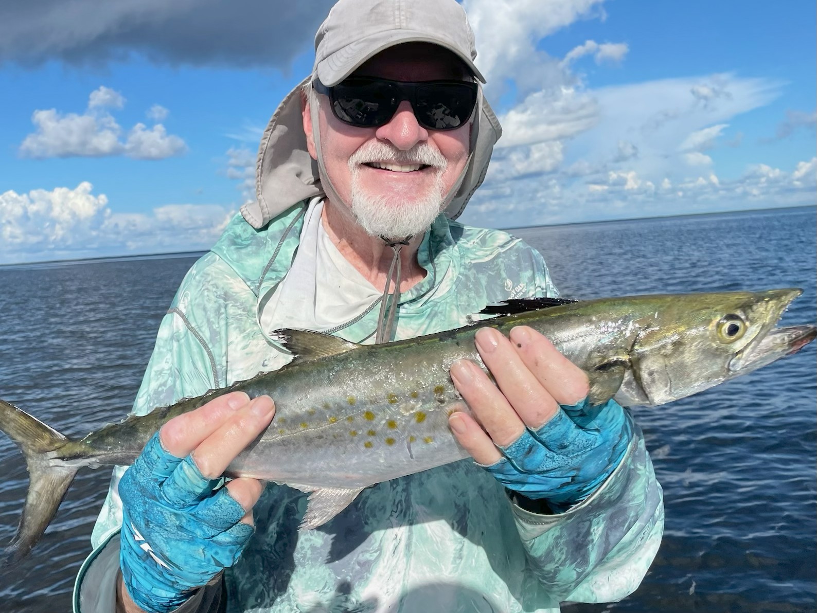 Pictured in this article is Anglers President, Tom Zalac, with a nice Spanish mackerel he caught to start off the season. Nice thing about catching mackerel is if you hook one there are usually many more in the area, as they are a nice schooling fish. Mixed in with this school of fish you usually can find small bluefish and an escaping ladyfish. Have fun this season and we look forward to seeing you at the Burnt Store Anglers meetings.