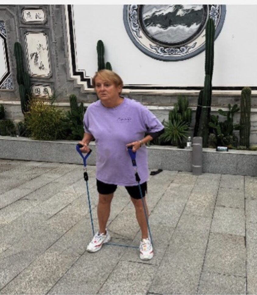 Recently members Geni and Bill traveled to China. They packed their exercise bands, and with Marna, BSM Fitness Instructor, on their phone to guide them through their workout, they never missed a beat.