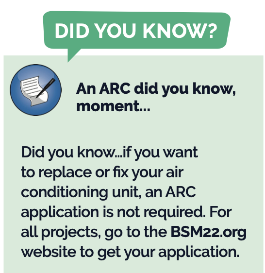 Section 22 restrictions and applications are available for download at BSM22.org. Submit your ARC applications to your condo association, if applicable, then to Alliant Property Management, 13831 Vector Ave., Fort Myers, FL33919, Email: [email protected].