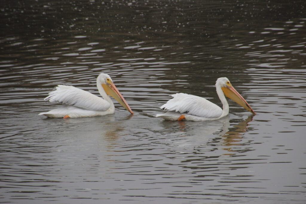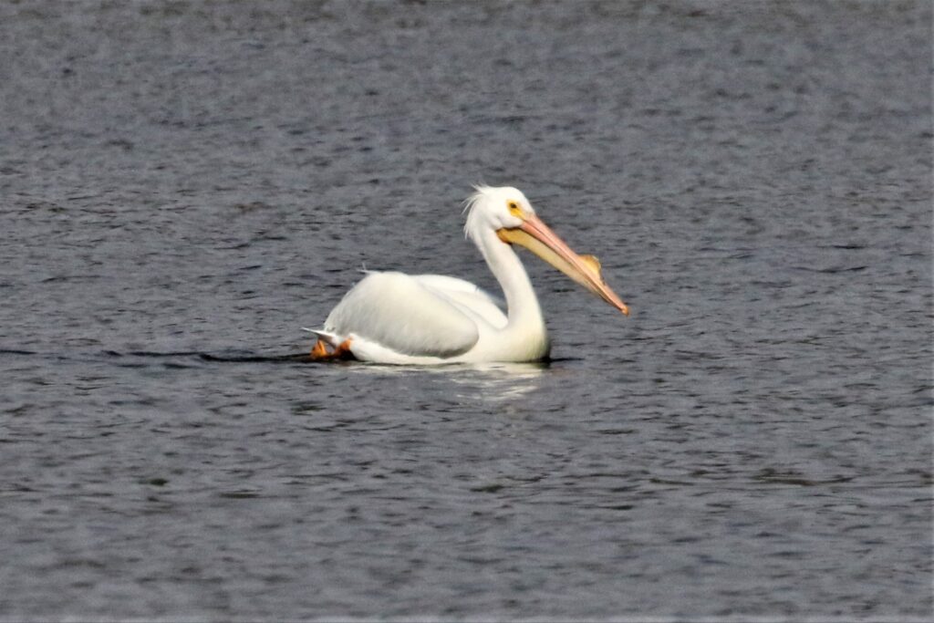 In Florida, we only see White Pelicans during winter along coastal areas. They forage in groups to drive small fish together, where they scoop them up with their large bills.