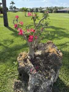 DESERT ROSE IN BACK OF TIEDEMANNS’ HOME ON PELICAN 7. You have probably seen them around The Marina – in pots, by mailboxes and on lanais. The desert rose has become very popular in southwest Florida. But – what are they, where do they come from, and how do you care for them? The desert […]