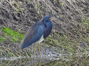 The Tricolored Heron is mostly blue, with a white belly and a brownish back. Sometimes the white extends up the underside of its throat. At 26” the Tricolored Heron is slightly longer than the more common Little Blue Heron. It has several hunting techniques that make it unique. It will fly over shallow water, dragging […]