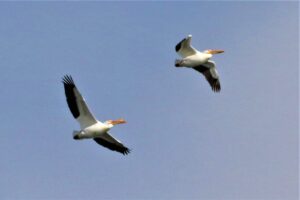 WHITE PELICANS IN FLIGHT BY RICK READ The American White Pelican is a large, white waterbird with a 9-foot wingspan. It has a white body with black flight feathers, a huge yellow bill, and throat pouch. They breed in colonies on inland lakes in western states and up into Canada. During breeding season, the tops […]