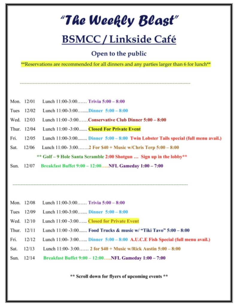 “The Weekly Blast” BSMCC / Linkside Café Open to the public **Reservations are recommended for...