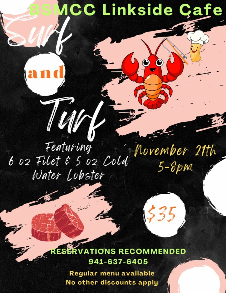 BSMCC Linkside Cafe Featuring 6 02 Filet & 502 Cold Water Lobster November 21th 5-8PM...